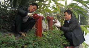 1、由于地下消防栓上蓋著厚重的井蓋板,打開時一般由兩個人用鐵制的專用工具勾起井蓋板,露出地下消防栓后再用加長的開關扳手深入到
